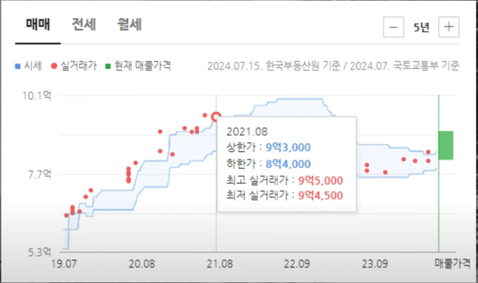 - 가격: 현재 매물 8억 원, 전세 5억 원