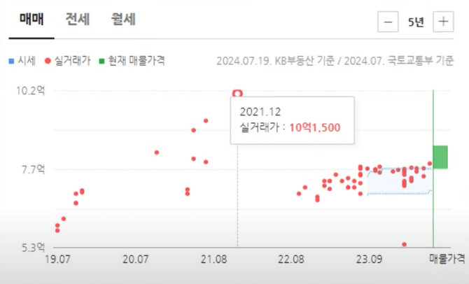 - 가격: 현재 매물 7억 7천만 원, 전세 5억 3천만 원