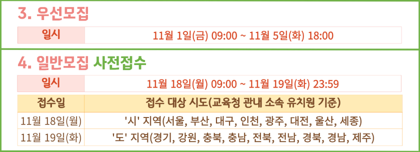 유치원 입학 절차에는 우선 모집과 일반 모집이 존재합니다.